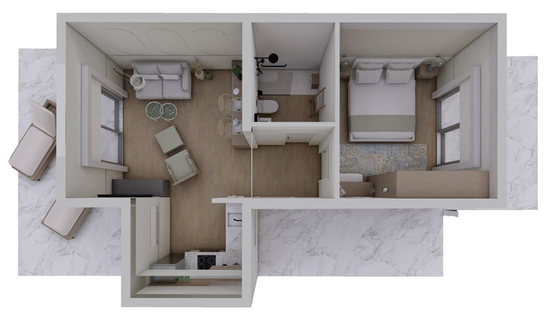 At "Eternal Olive" we took care with special architects and decorators to create rooms and common areas suitable for the elderly so that they feel home away from home.